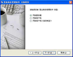 局域网中用作服务器的计算机(指用于存放业务数据并且安装SQL Server数据库的计算机)选择“网络服务器”,其他计算机和利用宽
