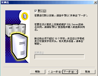 进入“实例名”窗口,使用之前安装SQL Server 2000时的默认实例名称。(图1-2-13)