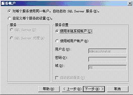装SQL Server 2000,弹出“服务帐户”窗口。