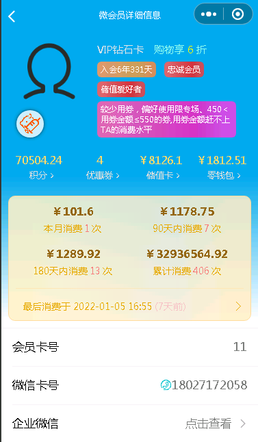 五、微顾问在顾问中心查看会员档案、会员画像、会员消费记录、会员沟通记录等来了解会员
